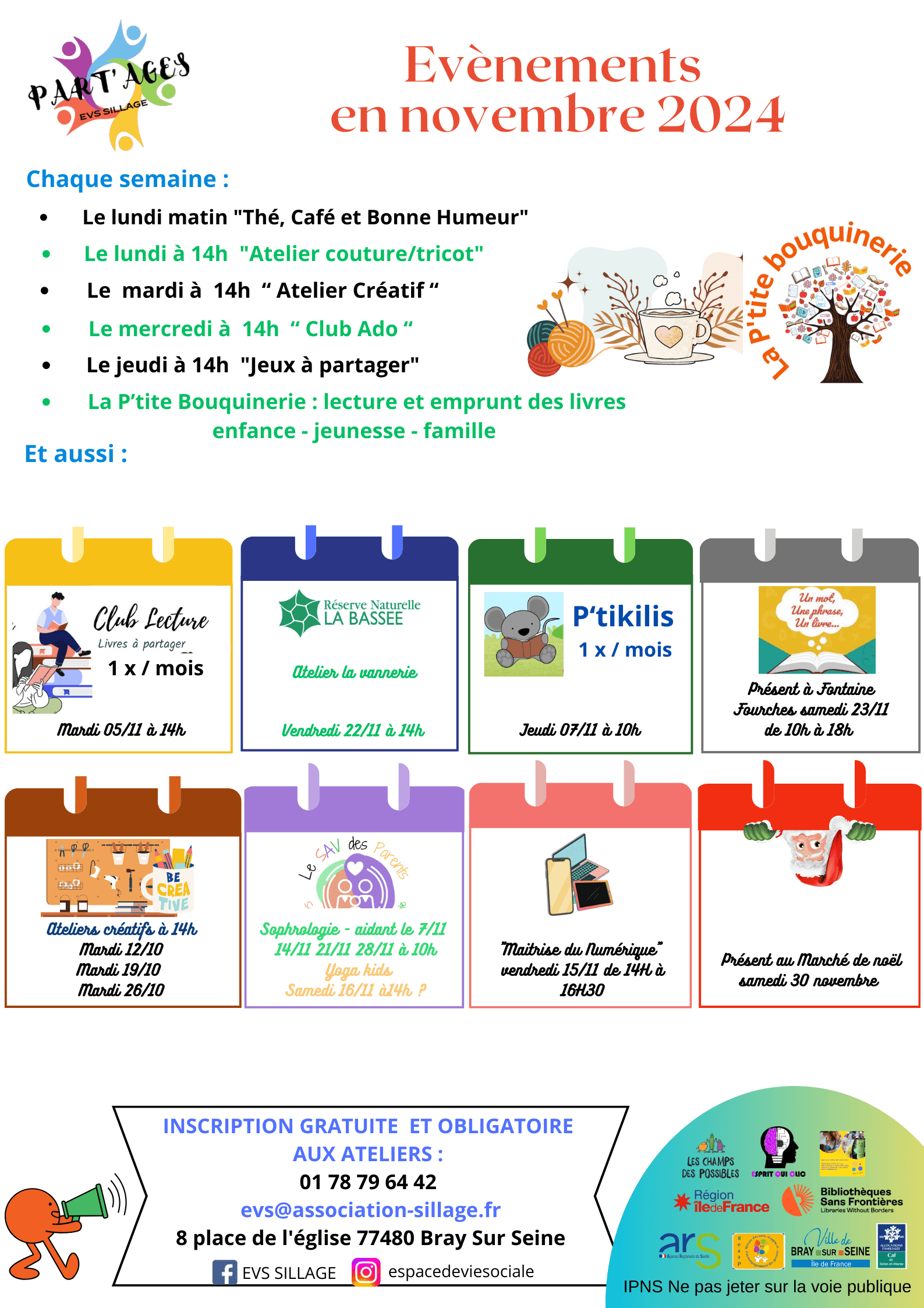 Labellisé le 01.09.2022, « Part’Ages » l’Espace de Vie Sociale Sillage est ouvert à tous les habitants de la Bassée Montois Sa mission est de développer l’animation de la vie sociale et à destination des habitants du territoire.